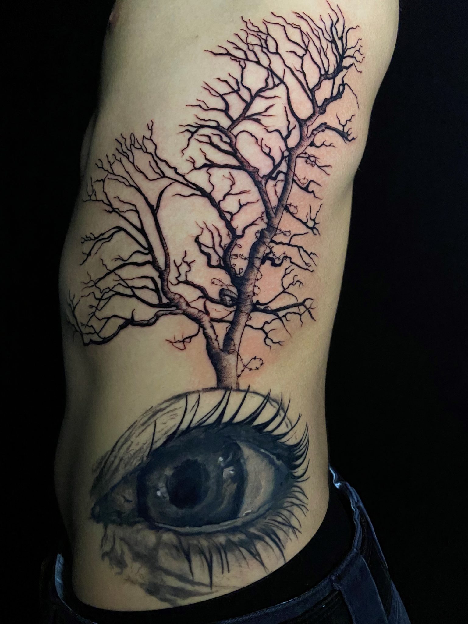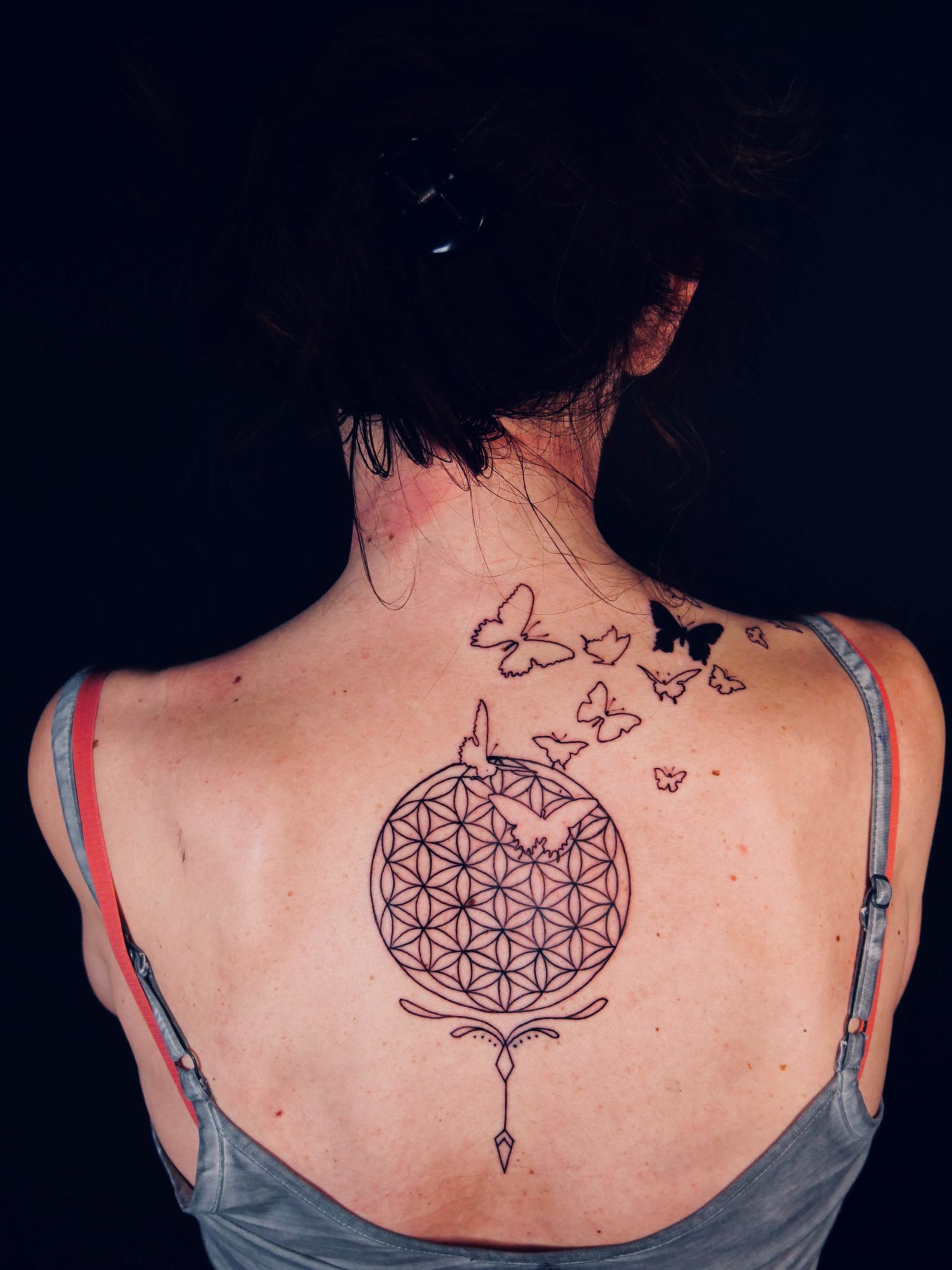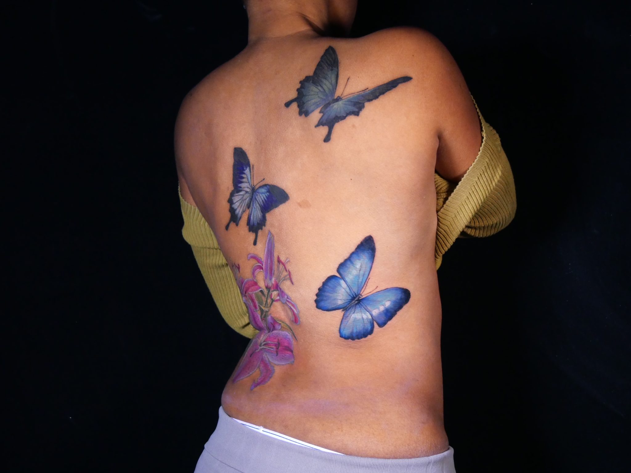 Je crée des tatouages uniques et personnalisés, avec une attention particulière aux détails, à l'émotion et à la harmonie du corps.