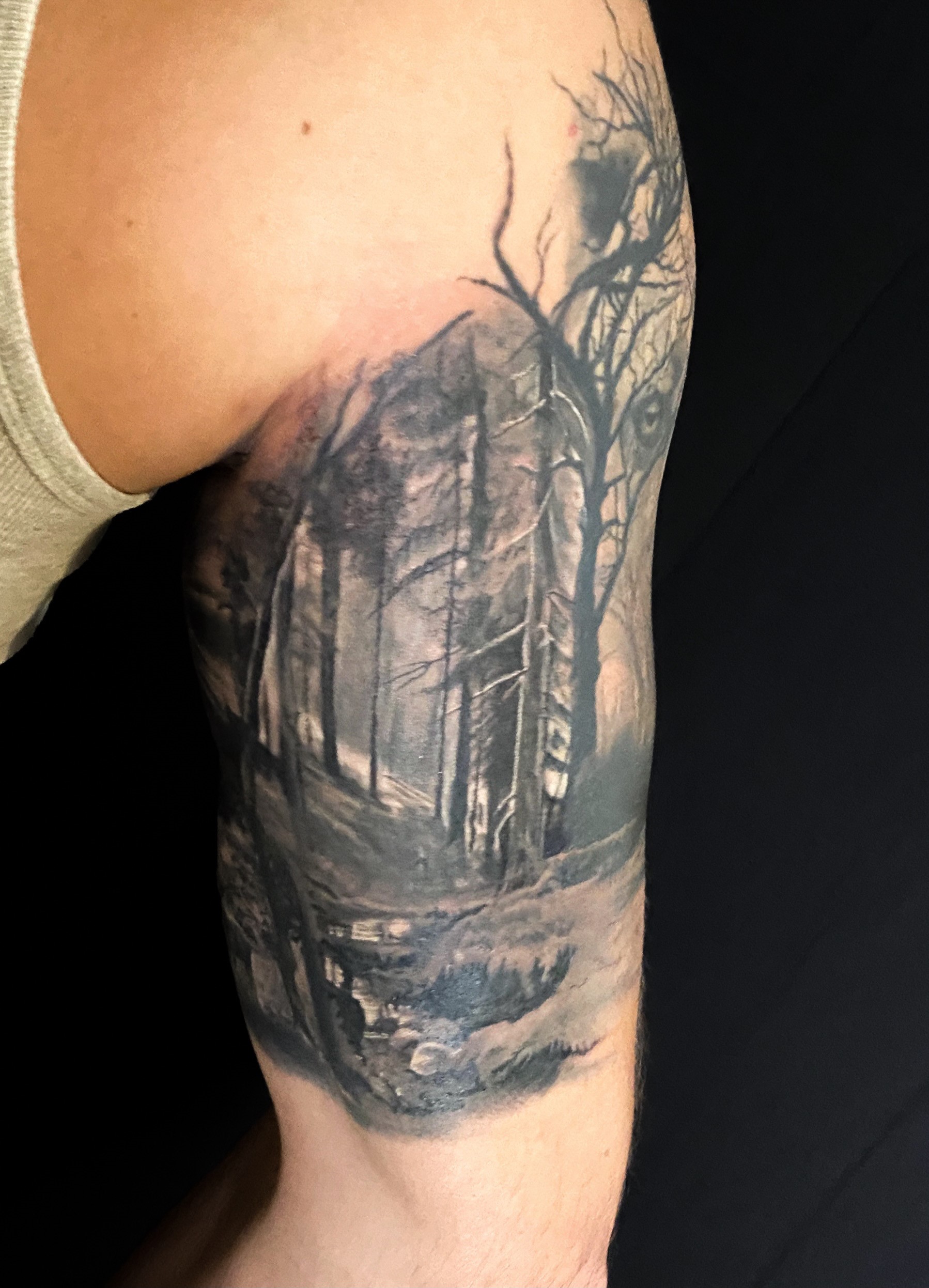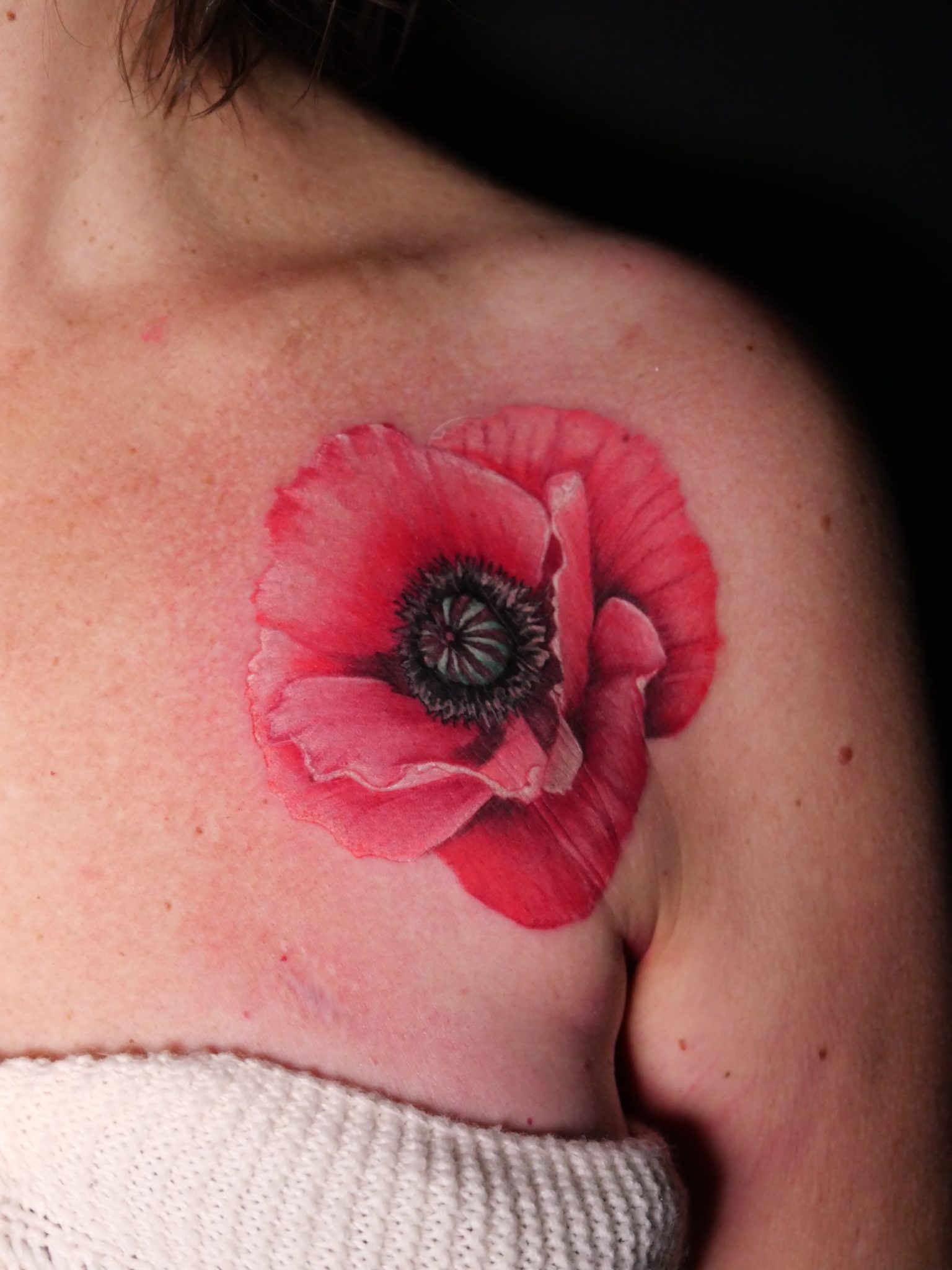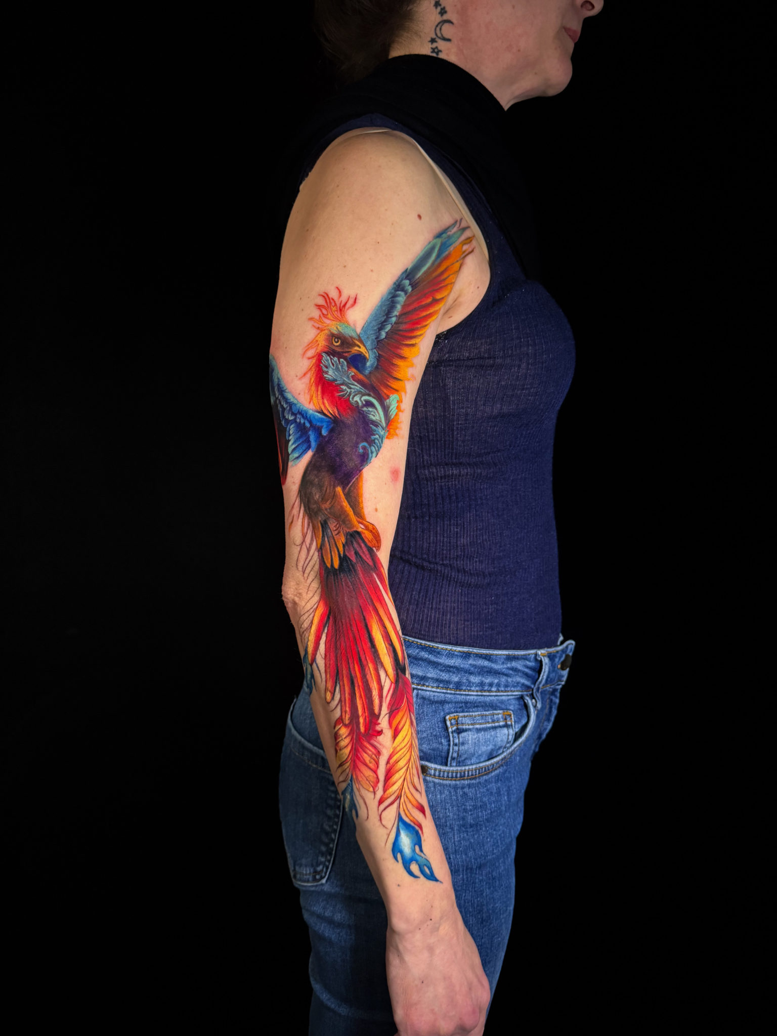 Je crée des tatouages uniques et personnalisés, avec une attention particulière aux détails, à l'émotion et à la harmonie du corps.